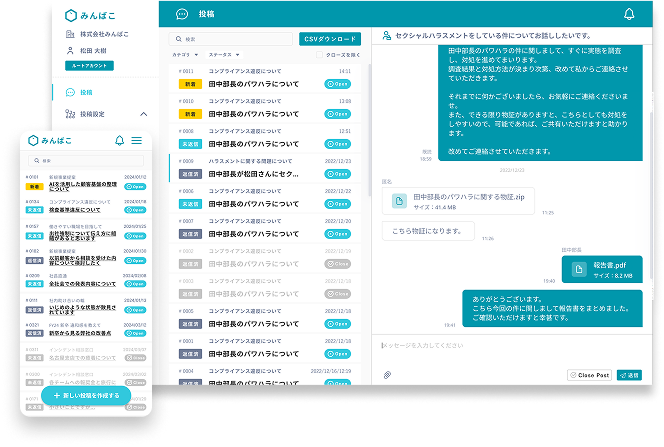 匿名投稿からチャット対応という”耳を傾ける” 仕組みで従業員の主体性と心理的安全性を高めます。