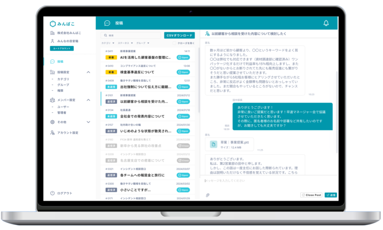 以上のように「みんばこ」は、単に意見を集めて終わりではなく、その先の「対話」と「議論」を通じて、組織の課題解決と成長を本気で目指す企業にとって、非常に強力なパートナーとなるツールです。
