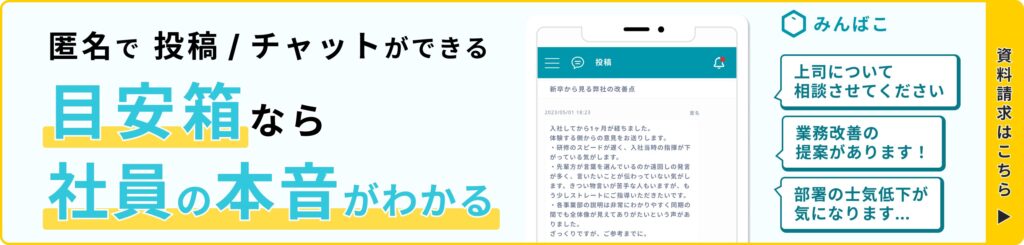 さらに、目安箱導入の進め方や、注意点についても解説しているため、社内改善に取り組みたい方はぜひ参考にしてください。