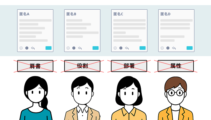 匿名投稿により肩書きに左右されない議論が可能。率直な視点が集まることで、課題の発見から改善案の検討までが着実に進みます。