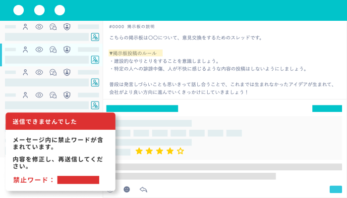 禁止ワード設定や通報フローで不適切投稿を抑制。健全な議論を守り、建設的なやり取りに集中できる環境を継続的に維持します。