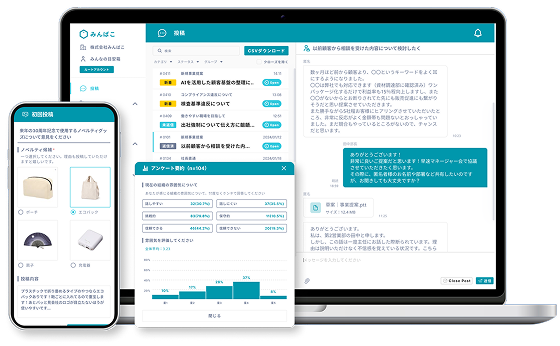 アンケートや投票を活用し、気になる意見や提案の賛否を集めながら、その投稿者と直接やり取りor公開で議論できる柔軟な運用が可能です。